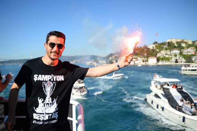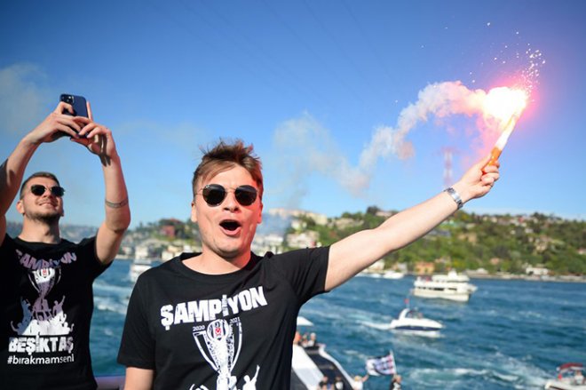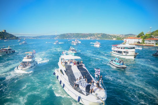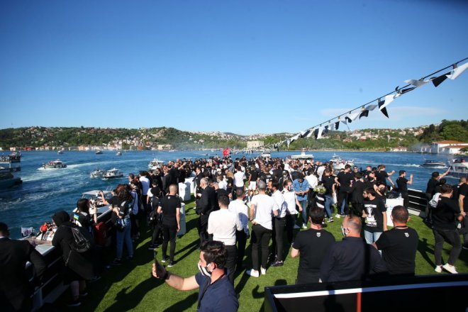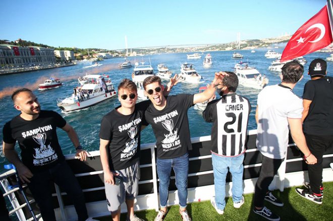 Edinilen bilgilere göre; Anadolu yakasındaki Küçüksu iskelesinden özel olarak hazırlanan tekneyle hareket eden şampiyon Kara Kartal'a, taraftarların içinde bulunduğu onlarca tekne, sevgi tezahüratları ve meşalelerle eşlik etti.