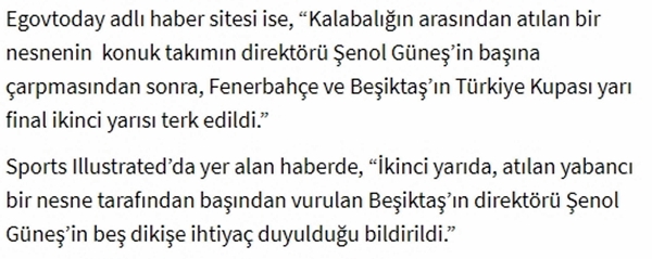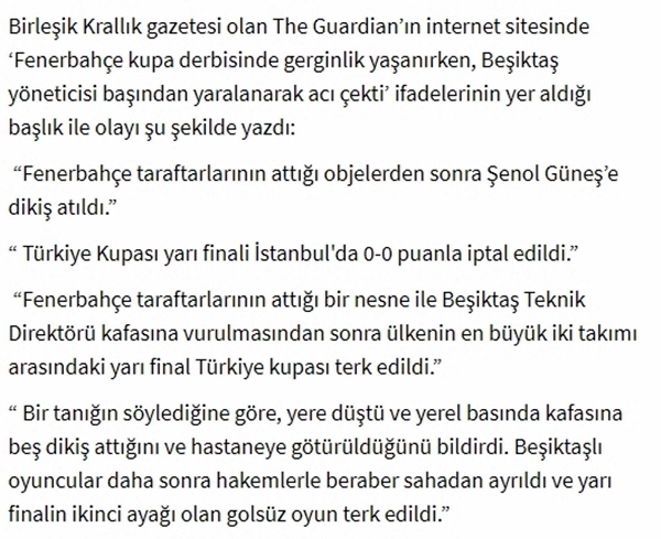 Türk futbolunda pek çok başarısı bulunan ve Avrupa’da övgüyle bahsedilen Şenol Güneş’in maç sırasında başına gelenler yabancı basında yankı yaptı. Yabancı basın olayı böyle anlattı: