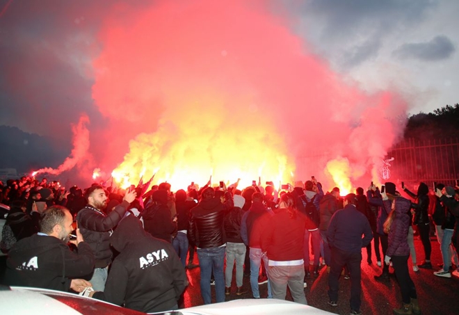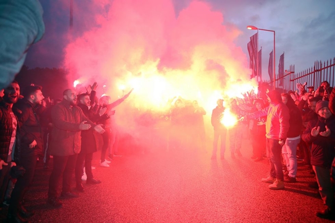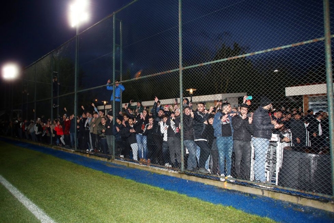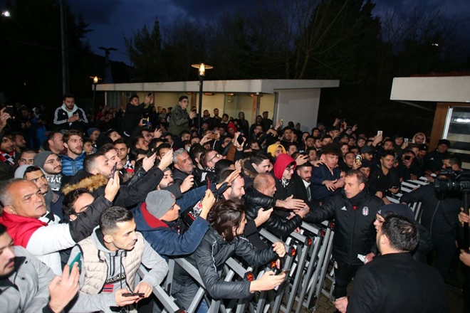 Bir grup Beşiktaş taraftarı, Gençlerbirliği maçı için BJK Nevzat Demir Tesisleri’nde son çalışmasını gerçekleştiren siyah-beyazlı futbolcuları ziyaret etti. Meşaleler yakıp sevgi tezahüratlarında bulunan taraftarlar, siyah-beyazlılara desteklerini iletti ve Gençlerbirliği maçında başarılar diledi.