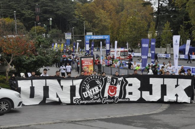 Haliç, Nişantaşı, Işık, Biruni, MEF, Kültür ve Bilgi Üniversitesi’nde öğrenim gören Üniversiteli Beşiktaşlılar (ÜNİBJK), İstanbul Maratonu’na katılan, Beşiktaş taraftarı dekatloncu Selim Sevgin’i destek için Vodafone Park’ın önünde bir araya geldiler.