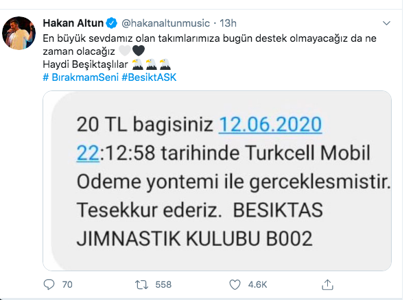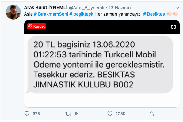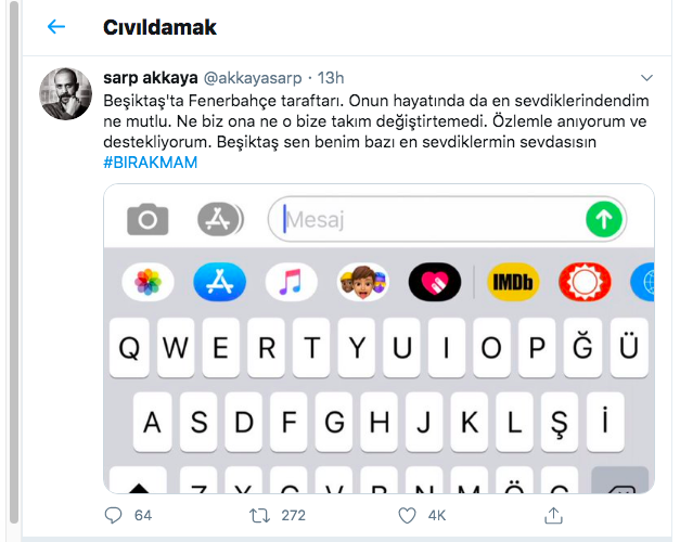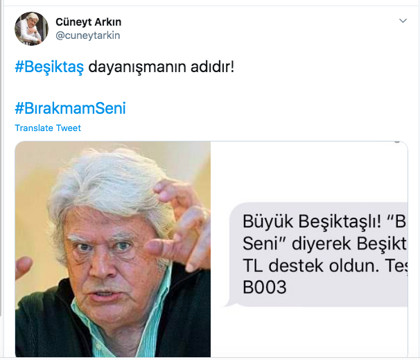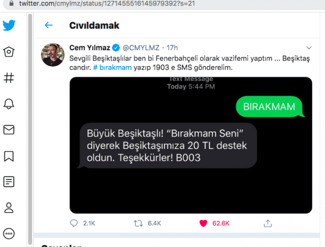Koyu bir Fenerbahçe taraftarı olarak bilinen Cem Yılmaz ile Galatasaraylı Cüneyt Arkın ve Mahsun Kırmızıgül de Beşiktaş’ın kampanyasına “BIRAKMAM” yazıp 1903’e SMS atarak destek verdi. Sosyal medya hesabından SMS mesajını duyuran Cem Yılmaz; “Sevgili Beşiktaşlılar, ben bir Fenerbahçeli olarak vazifemi yaptım... Beşiktaş candır, bırakmam yazıp 1903’e SMS gönderelim” diye yazdı.