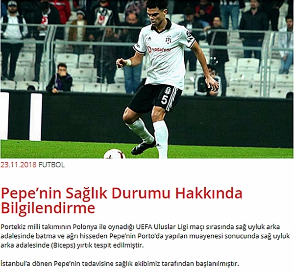 Ankaragücü maçından önce, Beşiktaş’ta şok bir gelişme meydana geldi. Kara Kartal’ın Portekizli yıldız oyuncusu Pepe, milli takımda oynadığı maç sırasında sakatlık yaşadı. Beşiktaş Jimnastik Kulübü, Pepe’nin sağlık durumu hakkında açıklamada bulunurken, yıldız oyuncunun Ankaragücü maçında forma giyemeyeceği öğrenildi. İşte siyah-beyazlı kulüpten yapılan açıklama:
