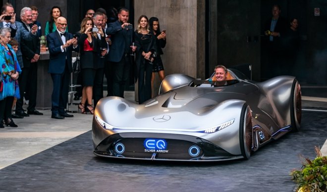 Mercedes’in en son nefes kesici konsept otomobili Mercedes-Benz Vision EQ Silver Arrow, tek kişilik araç olarak 1937'den itibaren rekor kıran W 125 otomobiline saygı gösteriyor. Geleceğin süper otomobilleri için heyecan verici bir tasarım olan Mercedes-Benz Vision EQ Silver Arrow, parıltılı, ince, parlak, pürüzsüz ve cilalanmış ince bir parıltıya sahip.