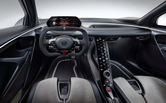 Dışı kadar iç dizaynı da dikkat çeken Evija'da, karbon fiber ve alkantara döşeme kullanılmış.