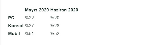 Oyunfor’un Haziran 2020 verilerine göre, oyun satışlarında Mayıs ayına göre yüzde 15 azalma yaşanırken, mobil oyunlar ağırlığını korumayı sürdürdü.