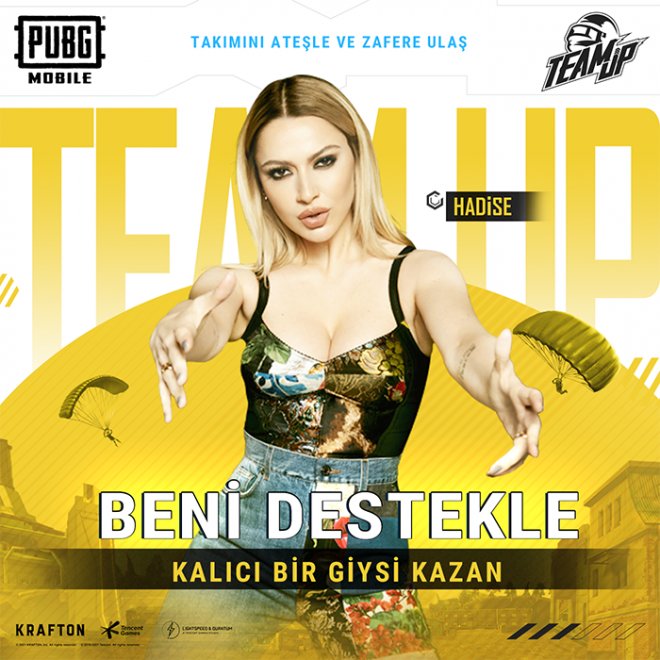 PUBG MOBILE’ın 2019’dan bu yana her yıl düzenlediği Team Up Challenge turnuvası, bu yıl da eğlence ve mobil oyun dünyasının en popüler isimlerinin katılımıyla gerçekleşecek. Turnuvada altı bölgeyi temsil eden her bir takımın bir ünlü “Kaptanı” olacak; katılımcı takımlara ise birer yayıncı influencer liderlik edecek. Bu yılki etkinlikte ülkemizi temsil eden takımlarımıza kaptanlığı Hadise üstleniyor. Team UP’ta yarışan takımlarımızı ise popüler yayıncılar Doch, Mezarcı, Nisa Ölmez, Solkay, Frozennx ve Soulless oluşturdu.