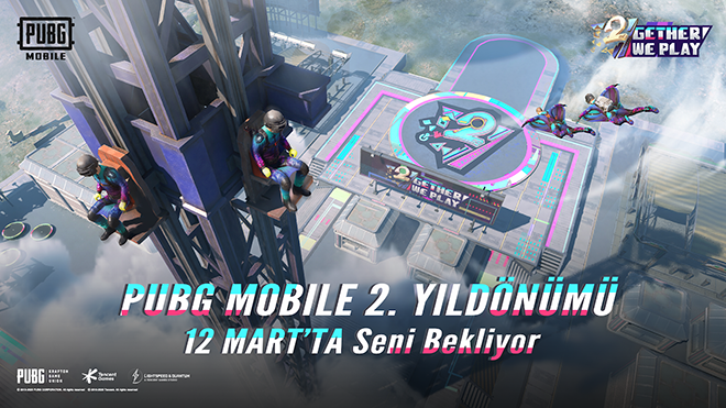 PUBG MOBILE’ın 2. Yıldönümünü kutlamak için “2gether We Play” temalı Royale Pass 12. Sezon, 9 Mart günü oyuna eklenecek ve bir çok eğlenceli aksesuar, oyun ve ödülü beraberinde getirecek. Bununla birlikte oyuncuların klasik Erangel haritasında Lunapark Modu’na girme şansı da 12 Mart gününden itibaren olacak. Bu haritada interaktif oyunlar da karşılarına çıkacak. Oyuncular ayrıca özel ödül ve başarımlar için yakın zamanda başlayacak Yıldönümü Özel - Sunucu Hedefi Etkinliği’ne de katılabilecekler.