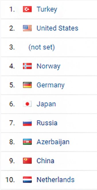 İşte, Google Analytics raporlarına göre, 2020'de besiktas.com.tr'yi en çok ziyaret eden ilk 10 ülke: