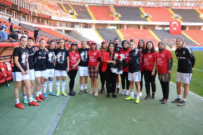 Karşılaşma öncesi Gazişehir Kadın Taraftarlar Derneği Beşiktaş Vodafone Kadın Futbol Takımı'na yeni sezon için başarılar dileyip çiçek takdim etti.