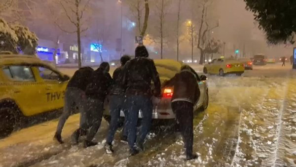 İstanbul'u etkisi altına alan karlı hava nedeniyle Beşiktaş'ta karlar altında kaldı. Beşiktaş Barbaros Bulvarı’nda yoğun kar yağışı ve tipi nedeniyle araçlar yolda kaldı, sürücüler zor anlar yaşadı. Araçlar yolda mahsur kalırken, sürücülere çevredeki vatandaşlar yardım etmeye çalıştı. Yolda patinaj yapan araçları iterek yokuşu çıkmaya çalışan sürücüler kameraya yansıdı.