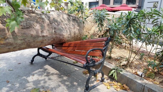 En son yaprakları motorlu kişiye geldi ama fazla bir yaralanma olmadı. Arabayı kullanan kadın da bir anda geri kaçtı. Ağacın kendi kendine yıkıldığını gördüm. Bir hastalığı olduğunu bilmiyorum ama çok eski bir ağaçmış." dedi.