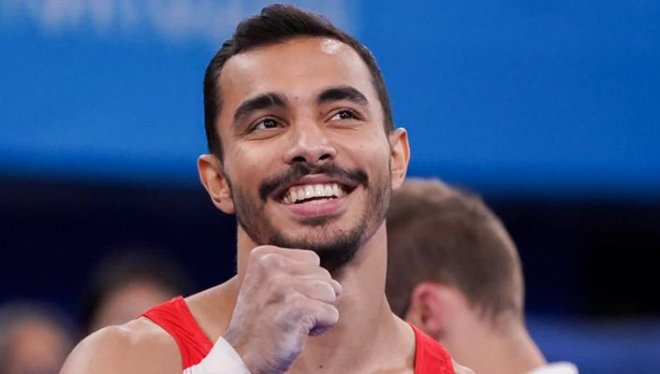 "Milli cimnastikçimiz Ferhat Arıcan, 2020 Tokyo Olimpiyat Oyunları'nda, paralel bar finalinde 15.633 derecesiyle bronz madalya kazandı.