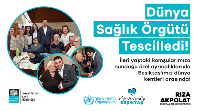 Beşiktaş Belediyesi, Dünya Sağlık Örgütü (WHO) tarafından yürütülen ‘Yaşlı Dostu Kentler’ ağına üye olmaya hak kazandı. Beşiktaş Belediye Başkanı Rıza Akpolat, konuyla ilgili yaptığı açıklamada kurum olarak hazırız mesajı vererek, Beşiktaş’ı yaşlı dostu olma ve ileri yaşta üretkenlik konularında bir numaraya taşıyacaklarını belirtti.