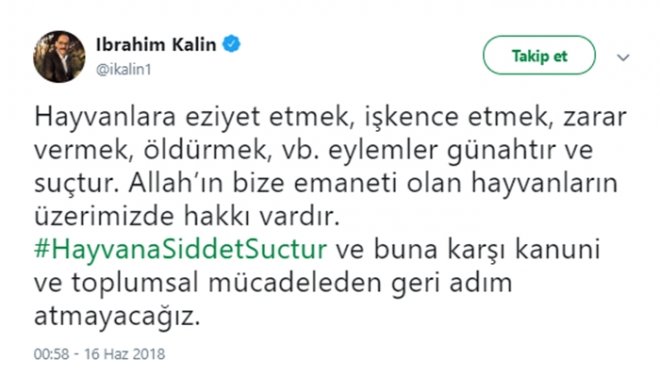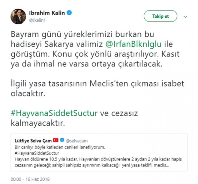 Cumhurbaşkanlığı Sözcüsü İbrahim Kalın, yavru köpek olayı ile ilgili Twitter hesabından açıklamalarda bulundu: