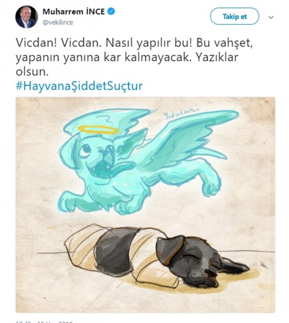 CHP Cumhurbaşkanı adayı Muharrem İnce Twitter hesabından hayatını kaybeden yavru köpek ile ilgili paylaşımda bulundu: