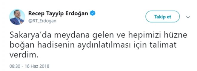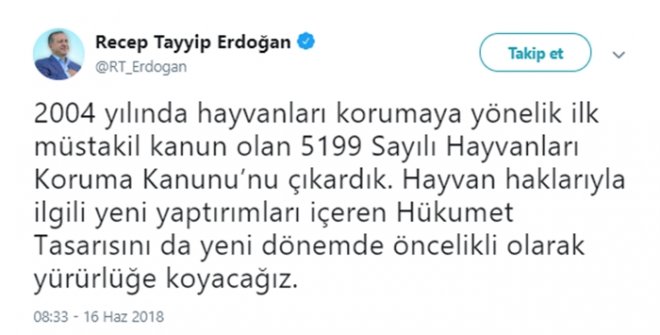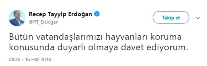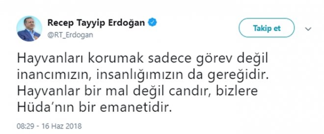 Cumhurbaşkanı Recep Tayyip Erdoğan, Sakarya’da bacakları kesilerek ölen yavru köpekle ilgili Twitter hesabından yaptığı açıklamada şu ifadelere yer verdi: