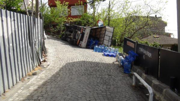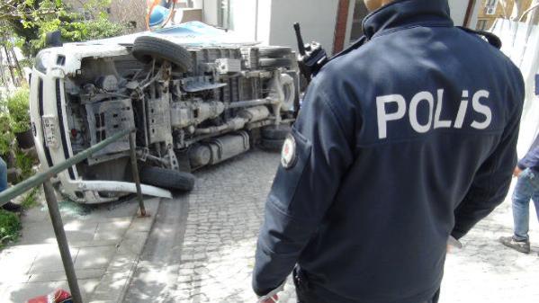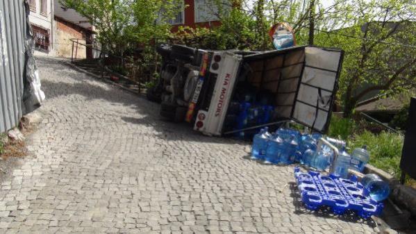 Edinilen bilgilere göre; kaza, saat 13.30 sıralarında meydana geldi. Ortaköy, Yeni Kaldırım Sokak'ta yokuş çıkan kamyonet, karşı yoldan gelen araca yol vermek için geri gitmeye çalıştı. Ancak yokuş aşağı geri şekilde giden kamyonet, kontrolden çıkınca devrildi. Kazayı görenler yardıma koşup itfaiye ve sağlık ekiplerine haber verdi. Kısa sürede olay yerine gelen itfaiye ekipleri, kamyonet içinde sıkışan sürücüyü yaralı olarak kurtardı. Kaza yerinde sağlık ekipleri tarafından ilk müdahalesi yapılan yaralı, ambulansa alınarak hastaneye kaldırıldı. Polis ekipleri başka bir kazanın yaşanmaması için emniyet şeridi çekerek önlem alırken, yola savrulan su damacanaları ekipler tarafından başka bir kamyonete taşınarak kaldırıldı.