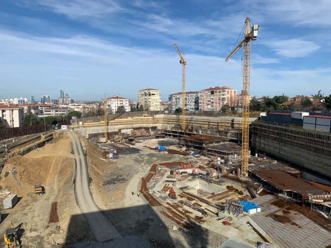 Akat Mahallesi’nin ortasındaki devasa kazı alanı öylece dururken Mayıs 2022’de arazide yeniden inşaat çalışmaları başladı.