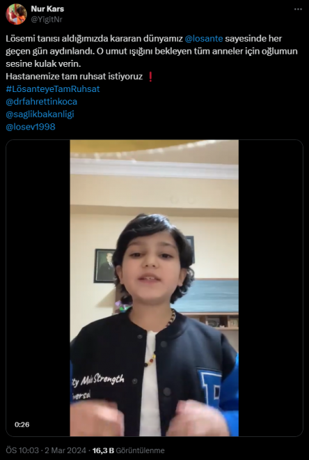 Tedavisi devam eden lösemili çocuklar, iyileşen gençler ve aileleri sosyal medyadan seslerini duyurmak için videolar paylaşmaya başladı. 2 Mart Cumartesi gününden bu yana #LösanteyeTamRuhsat etiketi ile yüzlerce video ve çağrı paylaşıldı. Çocukların ve gençlerin ortak mesajı ise; “LÖSANTE Hastanemize neden tam ruhsat verilmiyor? Daha çok lösemili ve kanser hastası çocuk sunulan ücretsiz tedavi hizmetinden yararlansın, kardeşlerimiz de yaşasın.” oldu. Lösemili çocukların ve iyileşmiş gençlerin ebeveynleri ise paylaştıkları videolarda; “Bu zorlu lösemi ve kanser mücadelesinde, kamuoyunun da desteğini yanımızda hissetmek istiyoruz. LÖSANTE Hastanesi için bu engeli birlikte aşmak adına duyarlılığınızı ve desteğinizi bekliyoruz.” dedi.
