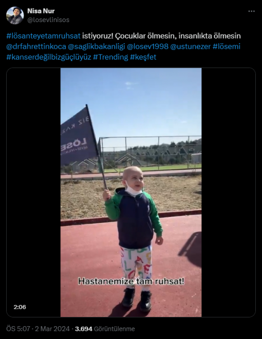 LÖSANTE Hastanesi, lösemi ve kanser tedavisi gören çocuklara umut olabilmek için halkın bağışları ile inşa edilmiş bir sağlık kuruluşu. Fakat, tam kapasite hizmet verme çabaları, 7 yıldır süregelen Sağlık Bakanlığı’nın tam ruhsat engeliyle karşı karşıya kalıyor. Bu durum daha fazla çocuğun iyileşmesine de engel oluyor.