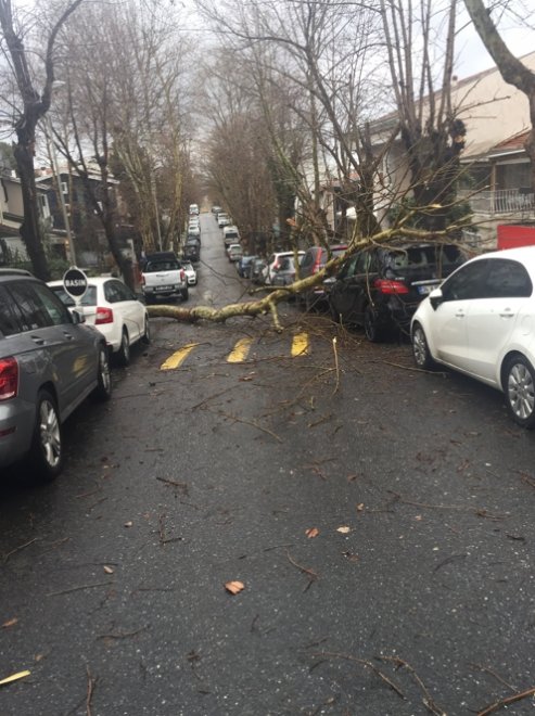 Öte yandan, Beşiktaş Medya Grup'un bulunduğu Akatlar Mahallesinde de büyük tehlike atlatıldı. Şiddetli rüzgar Beşiktaş Medya Grup'un önündeki koca ağacı kökünden sökerek devirdi. Ağaçın altında kalan araçlar büyük hasar gördü.
