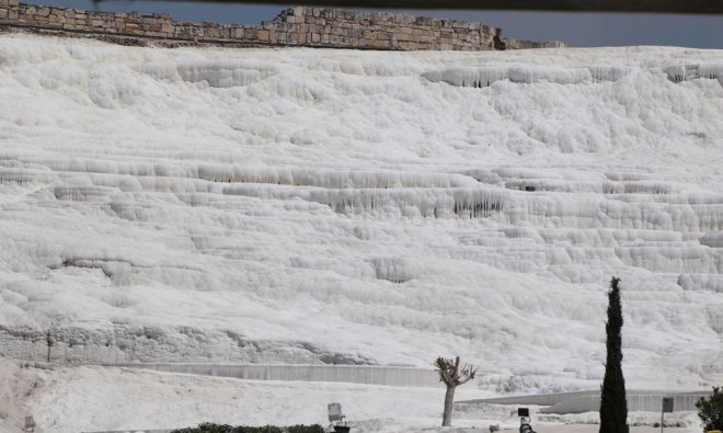 Geçtiğimiz 2019 yılında 2 milyon 580 bini aşkın turist sayısıyla rekor kıran Pamukkale, 2020 yılına ise kötü başladı. Girişlerin yaklaşık 1 aydır durduğu Pamukkale, uzun süredir kapalı kalmasından nedeniyle daha beyaz görüntüsüyle dikkat çekti.