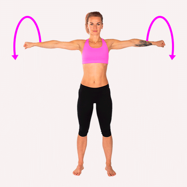 “Arm circle” (kol çevirme) hareketi ile omuzlarınızdaki gerginlik gevşeyecek ve eklemleriniz ısınacak. Sekiz kez öne doğru, sekiz kez arkaya doğru yapabilirsiniz.
